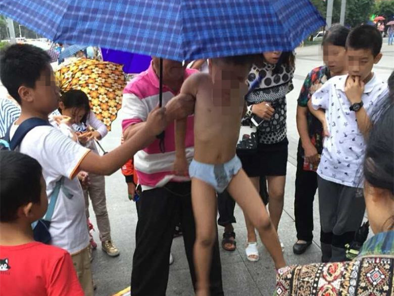 吴先生十分好奇,到底男童是犯了什么过错,居然将他衣物脱掉,赤裸这跪在大街上?
