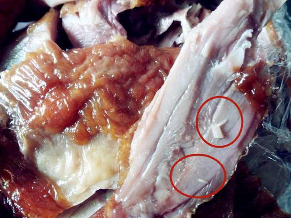 顾客超市买的片皮鸭 回家发现里面有“蛆”