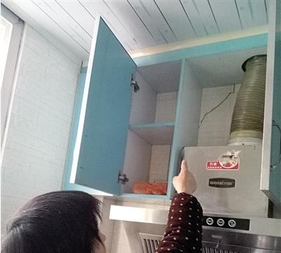 在刘婆婆的带领下,记者在其厨房确实看到厨房的抽油烟机的位置有很大一条裂缝。