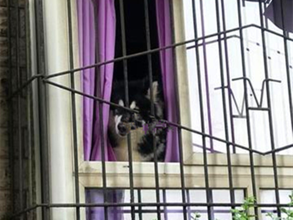 阿拉斯加窗台打望 闷声不响吓路人一跳