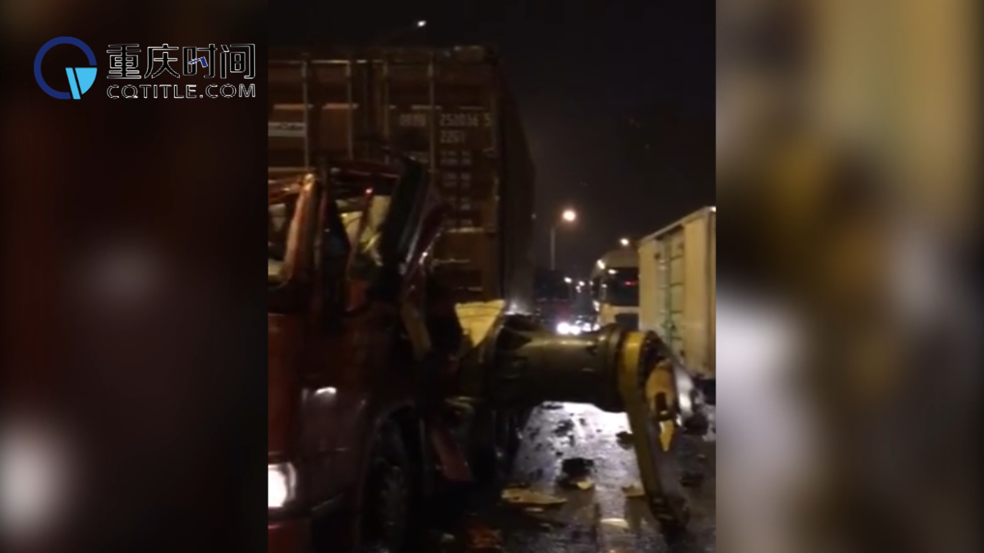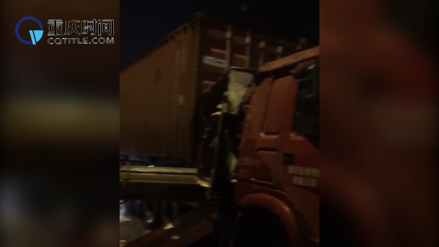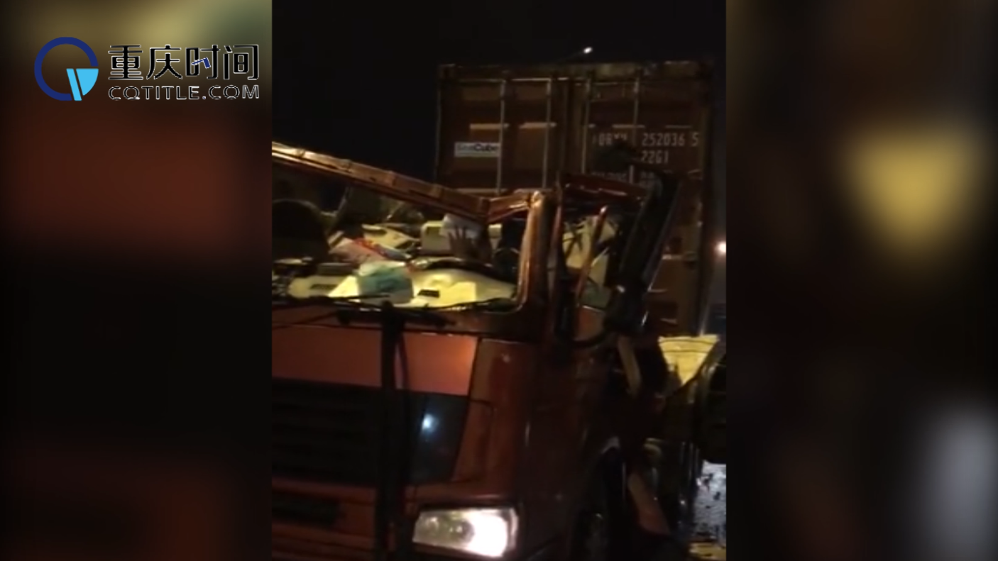 重庆雨夜凌晨两货车相撞 现场吓人