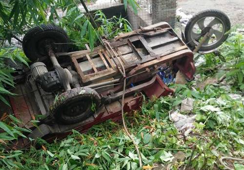 据目击者陶女士说,事发地点是一处较陡的斜坡,还是条泥路,由于下雨的缘故,路比较滑。“三轮车上装的都是咸菜,司机准备倒车回来,再装点,结果车轮一打滑,就栽下去了。”