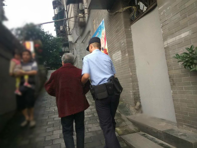 老奶奶自称姓黄,只有十八岁,要找自己的家。民警便将老奶奶扶到饮水村警务室查询走失老人情况,周围群众一眼就认出来老奶奶,全家搬到平桥里面租房子住。邻居们认识老人的儿媳,老人患有老年痴呆,这次可能是思乡心切,去看老家,误入工地,幸亏民警出警及时找到老人。随后,民警由群众带路,将老人护送回平桥的家,交到了儿媳手中,并一再叮嘱,要存放写有电话的卡片等联系方式在老人口袋,一旦老人走失,可尽快找回。