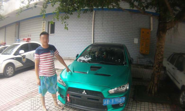 2017年6月20日下午6点,安澜派出所民警在安澜镇政府广场发现一辆车牌号被 悬挂到大车灯下,颜色为紫色的小型轿车,由于该车的悬挂车牌方式比较独特,有 点不对劲,民警仔细检查后发现颜色不是自然喷上去的,而是贴了一层很细的紫色 的膜。
