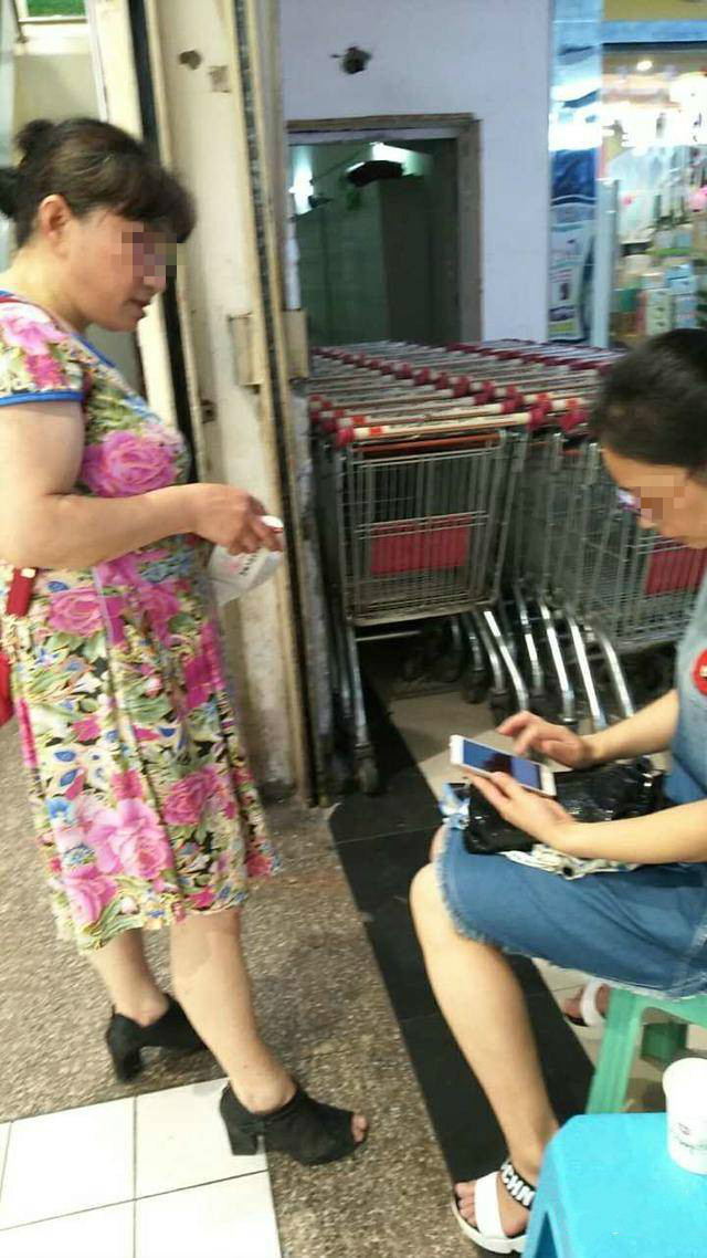 当时,穿蓝裙子女子就在花裙子阿姨前方不远处,当购物车冲下来时,蓝衣女子反应快,一下子抓住了购物车把手,才没有被打下电梯。蓝衣女子当时就怒了,很不能理解对方为什么要推着购物车坐电梯,花裙子阿姨一个劲儿不停地道歉并没有说清楚推购物车的原因。下电梯后,超市员工检查了蓝衣女子的伤势:左手手肘处破了皮,肿了一圈。于是花裙子阿姨和超市员工买来云南白药给女子涂上,女子休息一会儿后,双方相继离开。