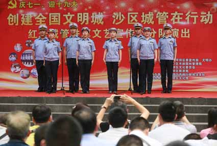 6月27日下午,“创建全国文明城﹒沙区城管在行动”专场表演在三峡广场黄桷树故事广场正式拉开帷幕。