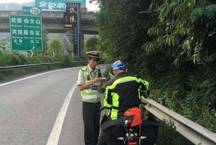 经查,该车驾驶人系江西籍退休职工,喜欢骑行摩托车到处旅游,本次的旅游目的地是他向往已久的地方——西藏。执法人员随即将其监护到武隆收费站下道,对骑行老人进行了安全宣传和教育,告诉他重庆高速公路各收费站入口均有禁止摩托车上道行驶的交通标志。老人表示,自己确实没有注意观察路口的交通标志,误入高速公路行驶,自己将绝不再犯类似错误,并驾驶摩托车驶离高速。