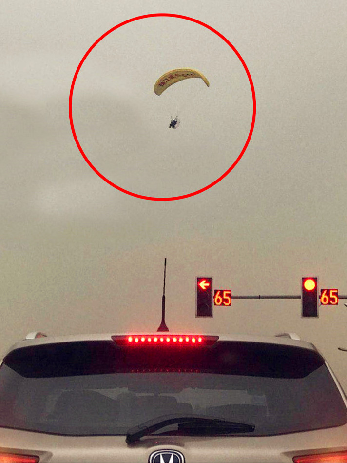 如果不小心偏离方向,后果不堪设想,看到滑翔伞的不少市民都为之捏了一把冷汗。