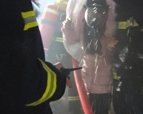 随后,搜救小组再次进入火场内部,搜救另一位被困者。下午3点01分,消防官兵在室内阳台发现了一名20岁左右的女子。看着女子在惊恐中不停哭泣,消防官兵将氧气面罩套在了她的面部。此时,灭火小组的消防官兵带着水枪赶到现场,扑灭地上的火后,被困女子被成功护送出火场。庆幸的是,火灾未对女子造成伤害。