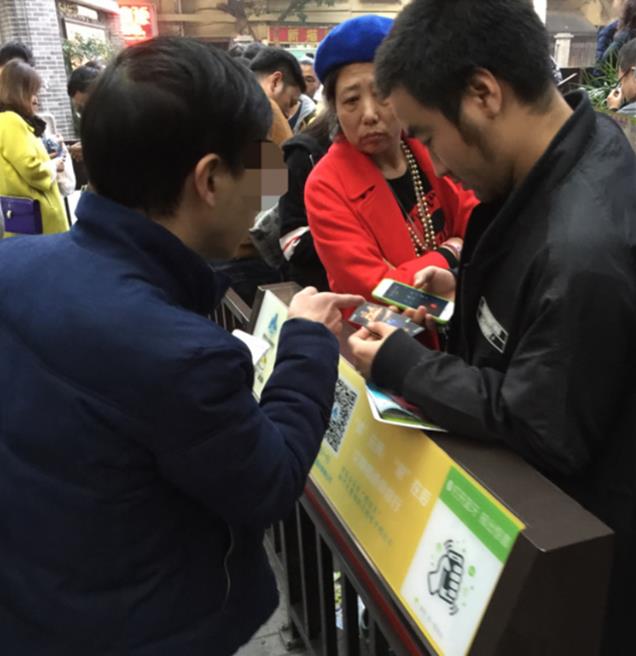 △票贩子向游客推销,租借公交卡。