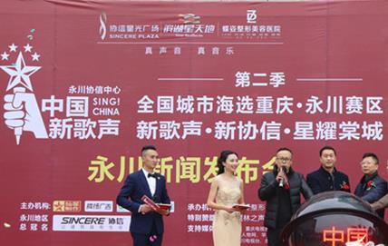 《中国新歌声》海选赛来重庆永川了,每一个有音乐梦想的你,都不该错过。10日下午,第二季《中国新歌声》全国城市海选永川赛区新闻发布会暨首选现场在永川协信星光广场举行。据悉,首场比赛有25名选手参赛,最终共有9名选手晋级下一轮比拼。
