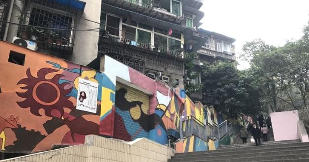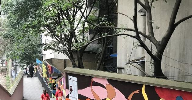 整条画廊的涂鸦还特意邀请了四川美术学院的专业团队进行设计,然后由重庆市第四十二中学、人和街小学的老师和学生共同绘制而成。