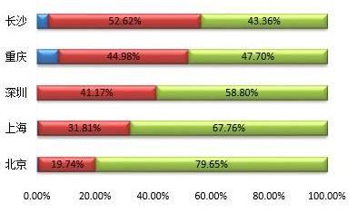 城市的人口变动情况是判断城市房价变化的指标之一,当一个城市的人口在急速膨胀的时候,这个城市的房价也会随之上升。从需求方面来看,重庆和长沙人口吸引力有限,所以需求弹性不足。2014年长沙的常住人口为731.15万人,户籍人口671.14万人,从人口流动情况来看属于健康状态,但是从需求的角度来看,二者仅相差60万人,外来人口少,缺少购房动力,这是长沙房价偏低的一个很重要原因。而重庆的人口吸引力则更弱,2015年重庆的常住人口为3016.55万人,户籍人口为3371.84万人,净流出比例达到10.54%。