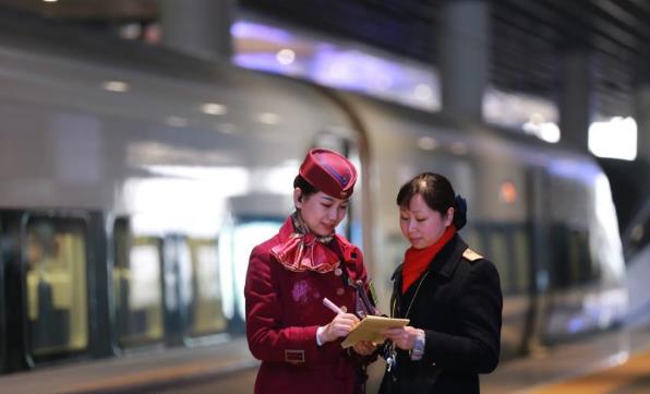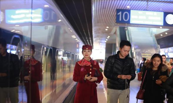 2016年12月13日,重庆,在列车达到每一个站点的时候列车长都会到站台进行巡视。
