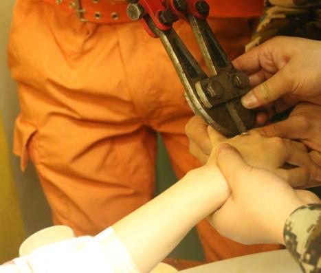 接到报警后,两江新区翠云消防中队官兵立即赶往现场。看见消防官兵来到产房,汪先生的妻子显得有些不好意思,她的双手浮肿,左手无名指的婚戒紧紧卡着。汪先生告诉消防官兵,他发现怀孕妻子左手上的戒指取不下来,是在妻子怀孕四个月的时候。由于取下来很困难,加上这枚戒指不是普通的戒指,是他们夫妻两人的定情婚戒,所以,准爸爸汪先生和妻子当时也不在意。