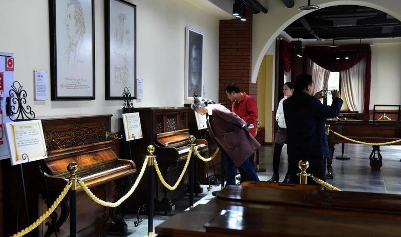 12月14日,重庆一名“琴痴”花费十年时间收藏的300余架古钢琴在该市钢琴博物馆展出。据了解,“琴痴”叶浩收藏的300余架古钢琴包括方形琴、立式琴、双子琴、三角琴等品类,这些钢琴主要产于十八世纪中叶至二十世纪初,大多来自美国、德国、英国、加拿大等国。叶浩告诉记者,他从11岁与钢琴结缘,大学就读于四川音乐学院,毕业后自己创业开公司,至今一直从事与音乐相关的工作。图为市民参观古钢琴。