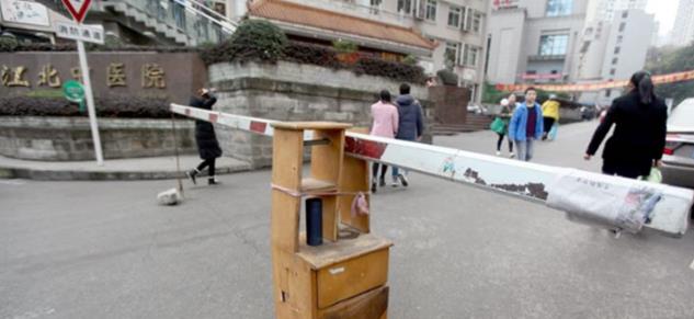 你见过用衣柜做成的道闸吗?江北区中医院门口就出现一个柜子做成的道闸,保安通过道闸来控制进出车流大小。