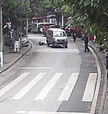 男孩撞上面包车被弹出 机智滚到路边躲过后车碾压