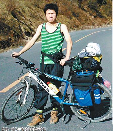 昨日上午,记者在北城天街一家咖啡店见到舒畅,约定时间是10点,但他晚到了半小时,“刚从印度回来,一个多月玩得太累了,早上几乎起不来。”他揉揉惺忪的睡眼说道,在44天的长途旅行中,他有一半都在自行车上度过,从西双版纳一路骑行,途径老挝,一直到泰国清迈,路程约有上千公里。
