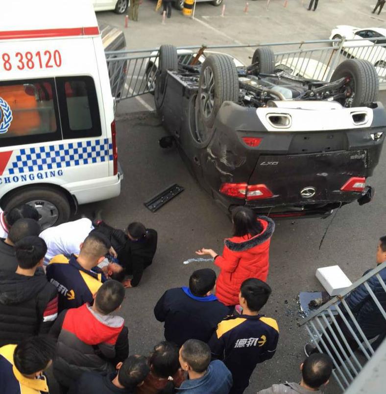 据介绍,事故发生于2月12日下午7点17分左右,在渝北一家医院住院部旁的斜坡处,一辆正在爬坡的越野车,突然横着朝左边的栏杆处后退,速度越来越快。正在这时,一名年轻女子带着一名小男孩正经过栏杆处,因躲闪不及,被失控越野车撞下三米左右的堡坎。