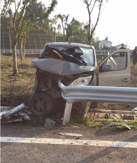 据最先赶到事故现场的执法人员胡浪说,他和同事在例行巡逻过程中接到事故报警电话,二人仅用8分钟赶到现场,发现整个事故现场骇人听闻,驾驶员冯某和妻子躺在护栏内的空地上痛苦不已,女儿额头被撞,捂着痛处一个劲叫疼,受伤最严重的小儿子已被过路驾驶员送往人民医院。事故车辆被旁边的护栏穿插了一大半,据测量达1.7米,护栏端头布满了鲜血,整个车头被撞得面目全非,场面很是凄惨。