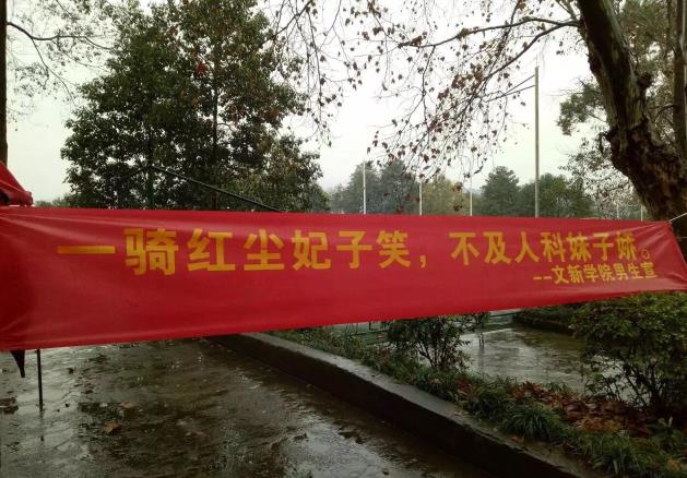 重庆人文科技学院拉出“一骑红尘妃子笑,不及人科妹子娇”的霸气横幅!