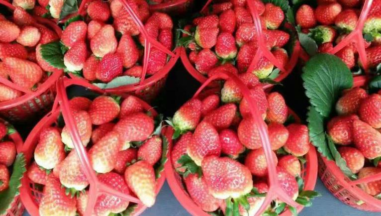 春草莓丰收 量大价低出游好选择