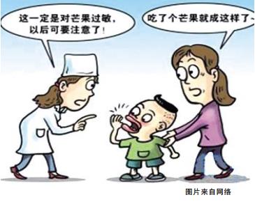 “热带果王”芒果一直很受消费者喜爱。4月12日下午,王希希一口气吃了4个泛青的芒果,没一会儿嘴就肿麻起来。一夜过去,不但未好转,反而因为使劲挠痒变得更严重了。经诊断,王希希是因吃芒果导致过敏症状,也就是“芒果皮炎”,需要进行抗过敏治疗。