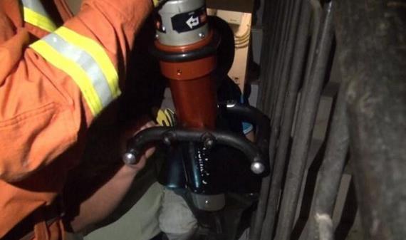 由于楼梯空间狭小,救援开展不利,消防官兵对周围人员进行疏散,并接替家长位置,紧紧的将小孩拖住。随后,消防官兵利用液压装备对小孩被卡扶手进行扩张,不断安慰哭泣小男孩。随着一声轻响“嘣”,消防官兵迅速将小孩腿拿出了扶梯,小男孩脱离危险也立马停止了哭泣。