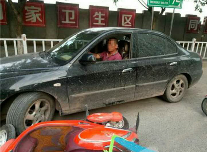 轿车司机看见张某竟然报警,趁其不注意,突然加起油门冲了出去,把堵在前方的摩托车撞到后,又冲向了周围人群,强行离开。幸好,人群及时散开,并没有造成人员伤害。轿车离开时,也被周围群众拍下了汽车号牌。