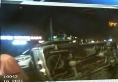 两车插队逆行 一车被撞侧翻在地