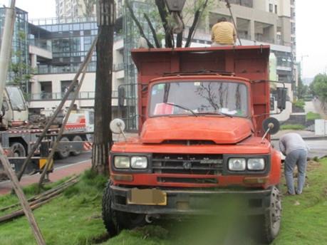 南岸交巡警支队西区大队接到报警后立即赶往现场,只见一辆红色中型自卸货车骑上路口旁边绿化带,车胎陷入泥中不能动弹。