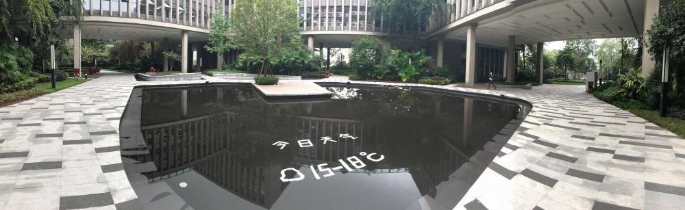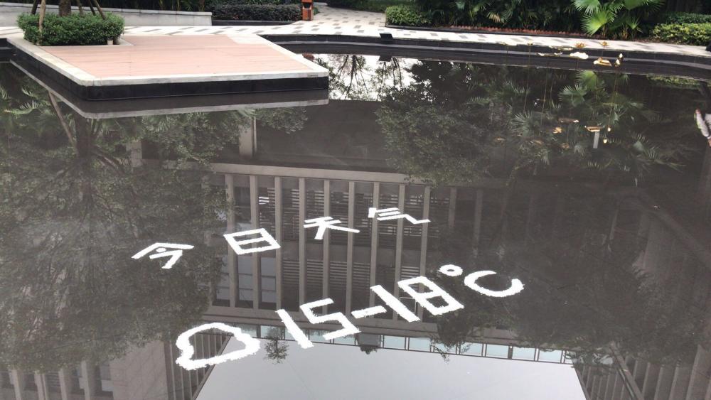 通过图片可以看到,水池中“今日天气”四个白色大字清晰可见,在其下方,还有多云的标志,旁边则显示的是今天的温度15—18℃。