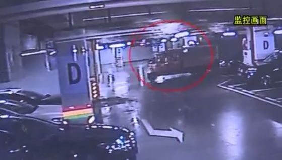 随后民警调取了车库的监控视频,画面显示当时一辆黄色的三轮车拉着很多石板准备出车库,由于前方是个斜坡,再加上载物过重,三轮车重力不足,三轮车就径直往后退下来,将旁边的轿车撞了。