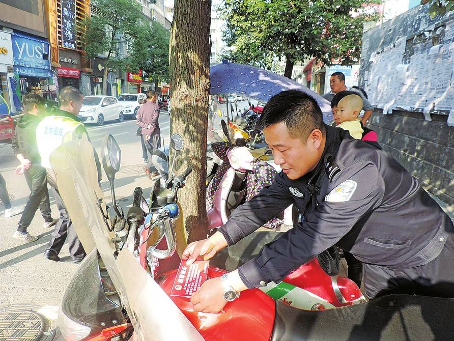 东门派出所所长郑新春在带队巡逻过程中介绍,每天都会安排几组巡逻队到街面巡逻,看到电瓶车、摩托车没有上锁,便会上前询问车主。