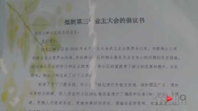 北京市均豪物业有限公司重庆分公司,没有接受记者采访。不过,在小区各个张贴栏都有他们张贴的文件,题为《抵制第三次业主大会的倡议书》。