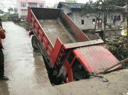 1月3日,重庆长寿云台一大货车头朝下,倒栽深沟。