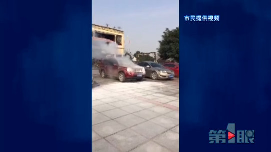 这是潘先生在现场拍摄的画面。当时,这辆红色越野轿车刚停下不久,发电机位置就开始冒烟。大家一边拨打119,一边从附近酒店取出灭火器,对车辆进行灭火。但火越燃越大,很快烧到了驾驶室。