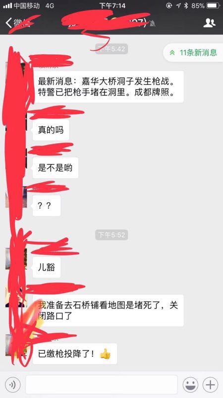 16日下午,有网友在微信群发布消息称,嘉华大桥洞子发生枪战,枪手驾驶的车辆是外地牌照,特警已把枪手堵在洞里,随后称枪手已缴枪投降。