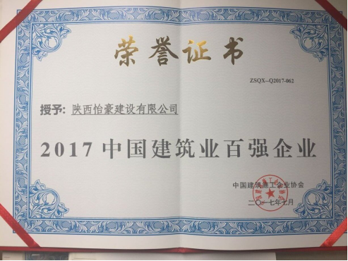 怡豪建设荣获“2017年度全国建筑施工百强企业”称号