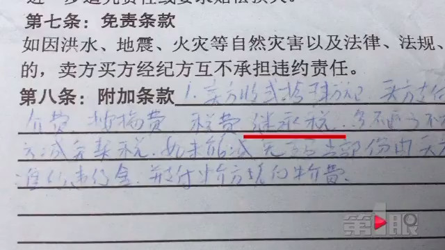 按中介合同约定,中介方向王女士收取了四万三千元,该笔费用包括中介费、按揭费、税费、继承税。然而,王女士从渝中区房屋产权交易中心查询得知,这套房屋应缴纳的契税、个人所得税、印花税等税费,总计也不过五千余元。那多出的三万多元到底是什么?刨除掉2%的中介费,500元按揭服务费后,王女士发现,自己缴纳的“大头”名为“继承税”!针对此事,龙宅地产望龙门店的李经理解释,涉事房屋是由卖家继承得来,遗产继承关系十分复杂。通过公证,多名继承人认可了房屋卖给王女士。因为房屋是继承得来,所以应该缴纳继承税。李经理告诉第1眼记者,这一税种早已开始征收,而且税率还不低。