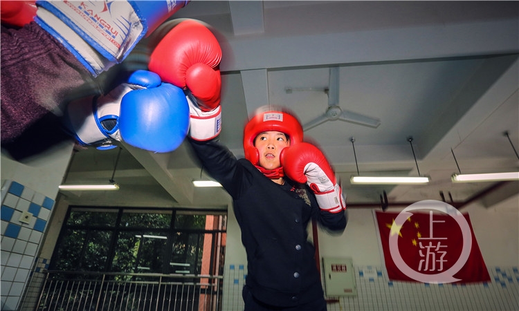 刚上小学四年级的杨思瑞,已经是九龙坡区拳击专业队青少年组的队员,在实战训练中甚至打败过比她大许多的孩子,并且立志今后要成为一名职业拳击手。