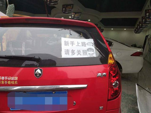 据现场目击者介绍,这辆红色长安车的驾驶员是一名女子,车尾处张贴着一张“新手上路,请多关照”的牌子,十分醒目。