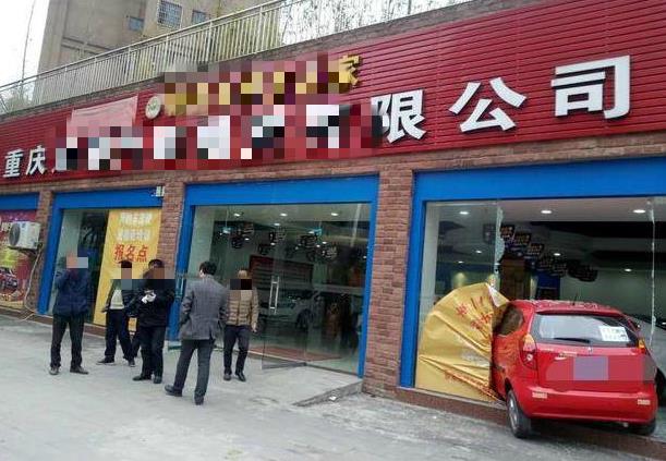 新手司机驾车冲进汽车店 待售新车被撞坏