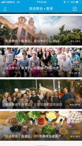 除了中秋特别策划活动外,旅途聚会也根据各种节日热点策划了适合各类人群参与的聚会活动:七夕节为单身人士在上海老洋房组了个七夕单身狂欢趴;吃货属性可以跟全世界爱吃的人约饭局;情人节情侣出行最实用的是世界各地的Photo Walk活动,一键解决自家男友不会拍照的苦恼;全民健身日你可以参与各个城市的夜跑活动。