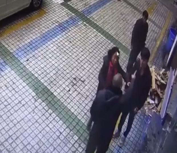 蒋师傅倒地后迅速翻身,将刘先生压倒在身下,双手不停的对着刘先生暴打,场面一度混乱。
