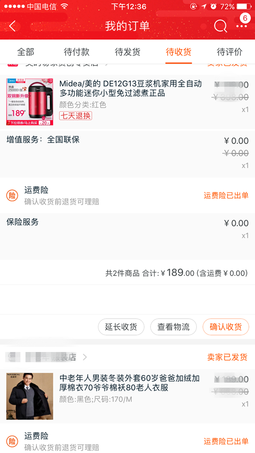 徐女士介绍,由于马上就要过年了,自己想给老家的爷爷奶奶买点新年礼物,孝敬一下老人。前几天,刚发了工资,于是就在网上购买了一件冬装和一台豆浆机,寄回老家。