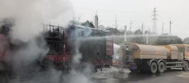 今天(1月22日)上午11点半左右,G75兰海高速北碚收费站,来了一辆自带“仙气”的货车。仔细一看,那股“仙气”竟是货车货箱着火飘出的烟雾。执法队员当机立断,将货车疏散到空旷地带灭火。