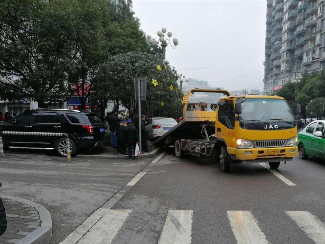 所幸,事故没有造成人员受伤。不一会,拖车将受伤小轿车拖走。