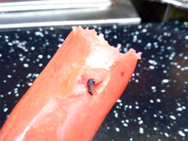 虽然不清楚是小吃店加热烤肠时进去的苍蝇,还是之前厂家生产烤肠时封存进去的苍蝇,都无从追究。